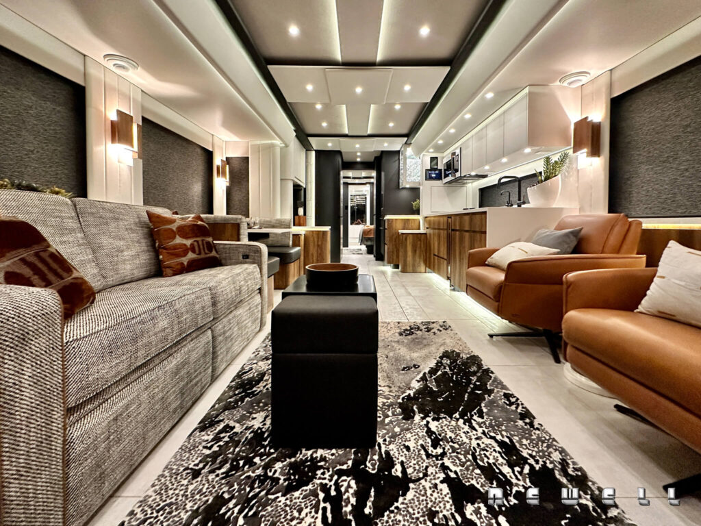 The Height of Luxury: Immersing readers in the sumptuous interior spaces of luxury motorcoach by Newell Coach, where no detail is spared in creating lavish living areas, opulent bedrooms, and spa-like bathrooms. The wealth of high-end amenities offered by Newell, from fully-equipped gourmet kitchens to plush seating and climate-controlled environments, guaranteeing a first-class experience on the road, make our coaches an unparalleled motorcoach in the luxury motorcoach industry. There is no competition!
