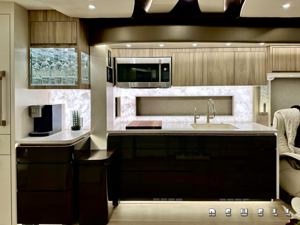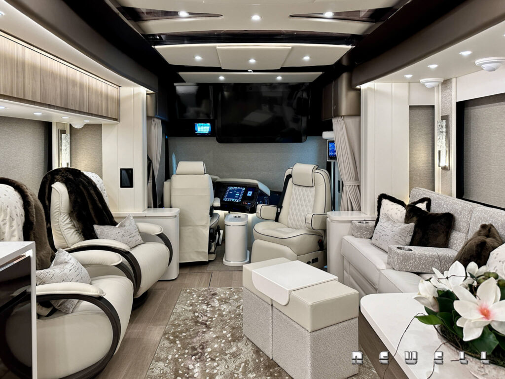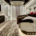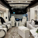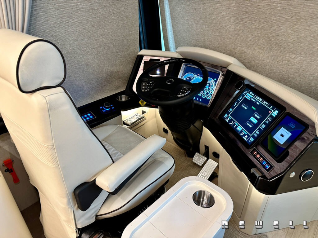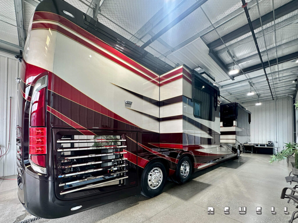 2025 Newell Coach p50 Quad Slide. Cummins X15 605 HP / 1950 ft lbs torque. Extensive storage, L-Shaped dinette with raise / lower & extend / retract table. Exclusive Newell Coach pre-owned Two Year Limited Warranty.