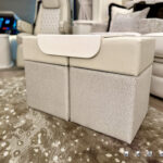 Upholstered ottoman with solid-surface top