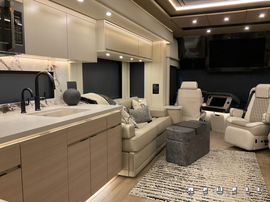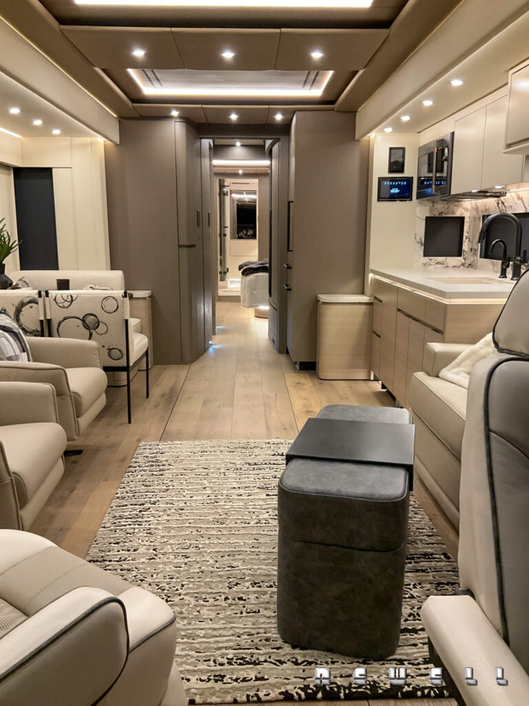Experience the superior power delivered by the Cummins X-15 605 HP / 19050 ft. lbs torque. Newell Coach Exclusive Continuous Damping Control, Electronic Steering Assist, and Active Rear Steering Tag Axle. Exquisite Interior Appointments, Two full Bathrooms. Invisacook Induction Range. Porcelain and Petrified Wood Countertops, and Indirect Lighting Throughout. Contact Phil Cornelius for Detailed Specifications.